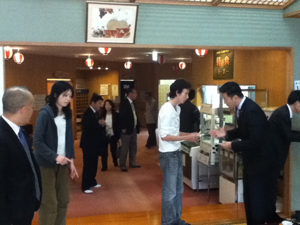 風呂から上がってダラーっとマッタリと歓談していたら、2時過ぎにいきなりスーツ姿の団体がやってきた!!!
