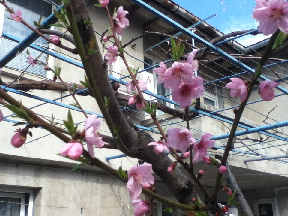 桃の花が咲いている。春だねぇ。
