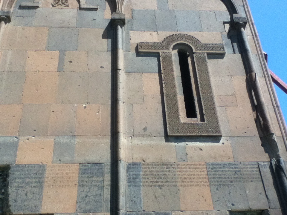 アルメニア文字だろうか、入口に刻まれている。レリーフと文字のなんかこの感じがすごく気に入った。